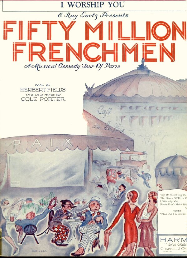 This Parisian set musical comedy cemented Porter’s unique blend of sophisticated lyrics with haunting and vibrant melodies. Often described as an onstage tour of Paris, the book centered around William Gaxton (later famous for appearing in the Gershwins’ Of Thee I Sing and Porter’s own Anything Goes) as a millionaire without his wealth and his attempts to woo the dashing Genevieve Tobin. An assortment of other odd characters fill out the obligatory secondary romances including Helen Broderick, Evelyn Hoey, Betty Compton, and Jack Thompson. Though the boy-meets-girl plot was not novel, the locations were. One number, “Do You Want To See Paris?” involved Gaxton as a tour guide, showing the audience the sights of the city.
