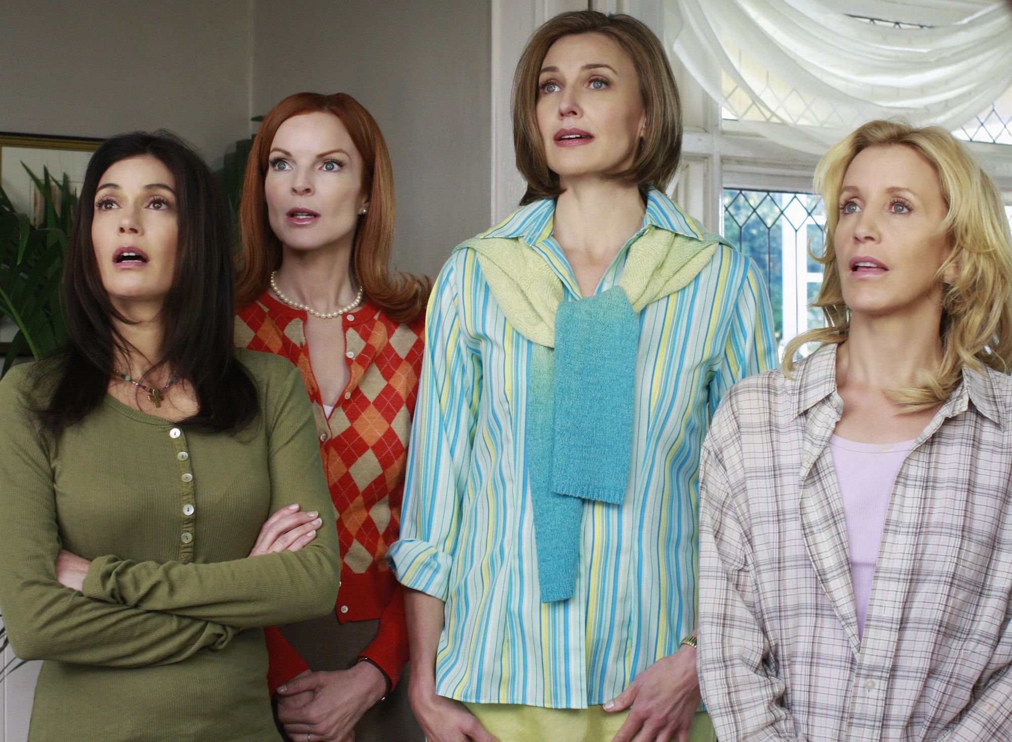 Here’s the thing: Modern television has gotten itself into an unfortunate predicament. A new series is expected to have an audience upon arrival. If it doesn’t get high ratings, it’s canceled immediately. There’s little time these days for a show to grow and develop an audience. However, Desperate Housewives was a hit right off the bat… a huge commercial AND critical smash. The success of that first season was the result of many things coming together in an almost perfect blend. There were four strong actresses (five, if we count Sheridan) playing equally strong and diverse women. Bree (Cross) was the living embodiment of the “Stepford Wife,” whose initial emotional shortcomings contributed to the series’ wicked satirical bite. Lynette (Huffman) and Gaby (Longoria) were two polar opposites: soccer mom and trophy wife, each providing elements of both comedy and drama, with scandalous stories (Gaby’s affair with her teenage gardner, Lynette taking her kids’ ADD medicine) that galvanized audiences. Meanwhile, the recurring Edie (Sheridan) was a bitchy divorcee that we loved to hate, and lovable Susan (Hatcher) brought in the RomCom hook, giving fans a couple to “ship” and root for.