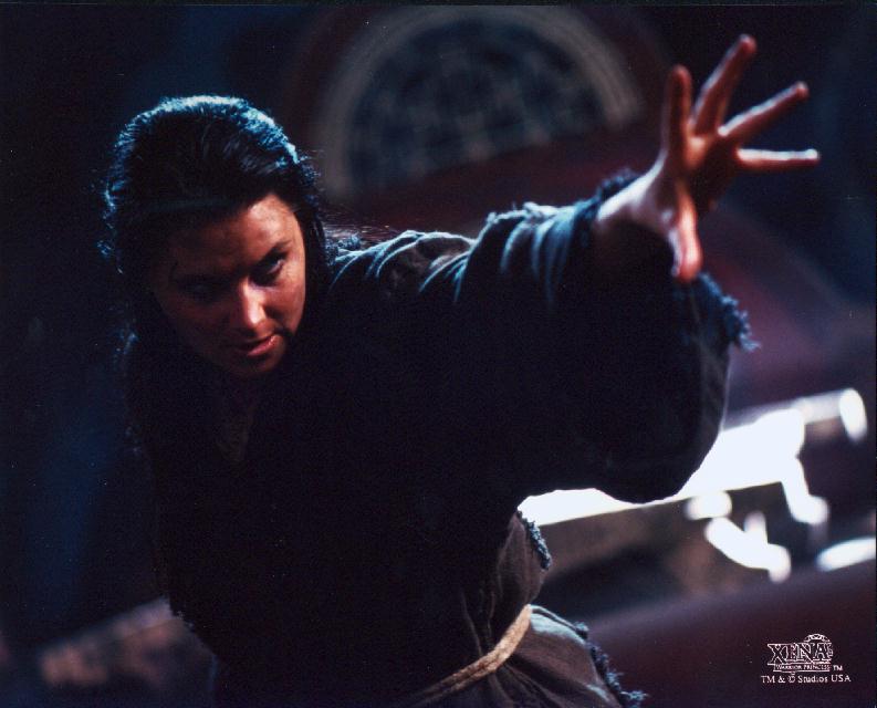 In flashback, we see Lao Ma showing Xena her incredible telekinetic powers — which, among other things, enable her to break a vase without laying a finger on it. Xena tries it herself (in vain), but Lao Ma insists that the only way to harness this power is to conquer her will: stop desiring and stop hating. Furthermore, Lao Ma tells Xena that she must be able to serve — not someone she loves, but someone she hates. Lao Ma invites Ming Tzu and his son over, and Xena, unrecognized by Ming Tzu, fights her urge to kill him. Pleased that Xena was able to silence her will, Lao Ma takes Xena to the bedside of her husband, whom the former has been keeping in a comatose state so that she can rule in his stead. He was a tyrant — and she doesn’t want him to be remembered that way. Lao Ma also reveals that, as a former courtesan, she is Ming T’ien’s real mother.
