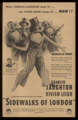 This British film was released in 1938 under the title St. Martin’s Lane. It wasn’t released in America until 1940, after Leigh’s triumphant success in GWTW. The title upon the American release was Sidewalks Of London. Whichever title you prefer, this enjoyable film is sort of a My Fair Lady meets 42nd Street, only with less glamour and thicker accents. (For musical theatre lovers, this was indeed the film that inspired the Sherman Brothers’ Busker Alley.)