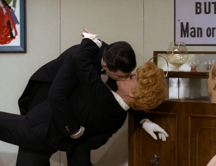 The big physical block at the end of the episode — Lucy on skates at the dance — is fun, but nothing extraordinary. The real strength of this episode lies in the build-up, which is incredibly funny, particularly in the scene at the shop where Lucy and Viv both try to flirt with the salesman. Every step is motivated (the script was written by two Dick Van Dyke writers) and there are frequent laughs. It’s a very strong opening to the season, indicative of fresh creative blood.
