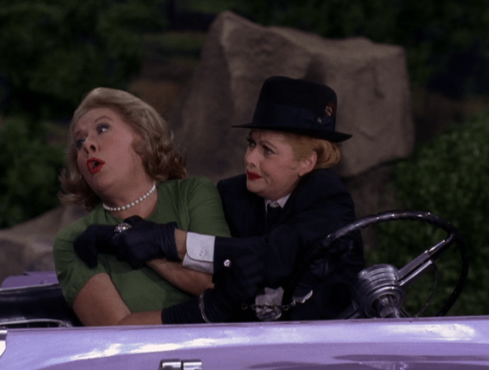 This is a highly underrated episode. Continuing from the previous week where Lucy gets a job as a meter maid, Lucy is chosen to go on a Lovers Lane stakeout with a detective to whom she’s attracted. It’s always enjoyable to see Lucy act feminine and have men off which she can play. The real treat is when Lucy bungles the operation and persuades Viv to come out and be her date, as they try to catch the bandit themselves. Hijinks ensue, and there are many laughs.