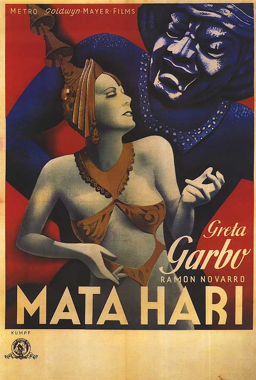 A semi-fictionalized account of the life of Mata Hari, an exotic dancer who was accused of spying for Germany during World War I. Starring Greta Garbo, Ramon Navarro, Lionel Barrymore, Lewis Stone, C. Henry Gordon, and Karen Morley. Written by Benjamin Glazer and Leo Birinski. Additional dialogue by Doris Anderson and Gilbert Emery. Directed by George Fitzmaurice.