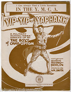 Enjoyed Yip, Yip, Yaphank. very much . I have heard the complete BBC recording of it. The song about the YMCA was funny. It reminds me of THE VILLAGE PEOPLES of the YMCA. it caused snickers from the audience who interpreted the song a little different especially since it was sung by two drag queens to an innocent young boy. i saw the first Desert Song movie the male comedy star was so gay I thought he was going to fly off the stage.. This was before the codes movies. Just goes to say . The audience then was just the same then as it is now. We don’t need some one telling was to think.