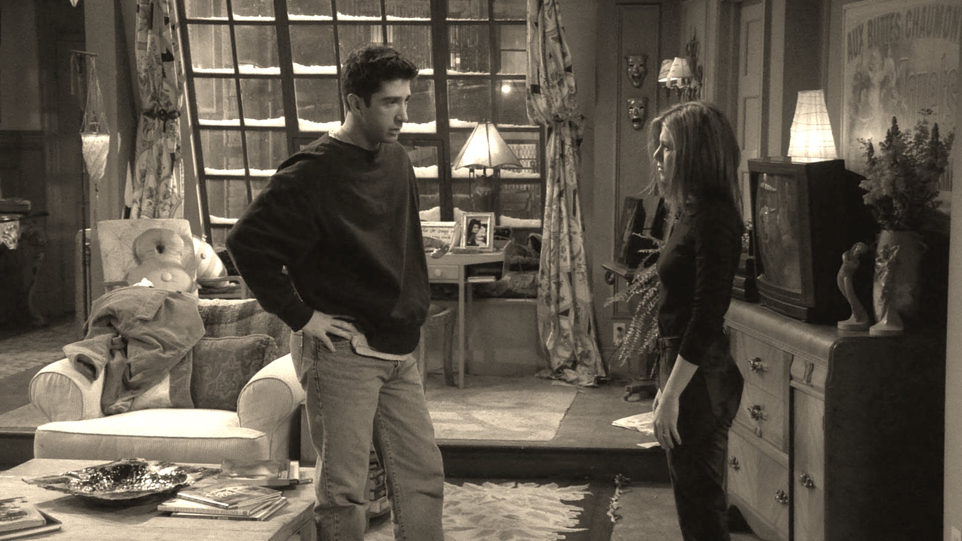 Ross and Rachel officially break up as the rest of the group is stuck in Monica’s bedroom.