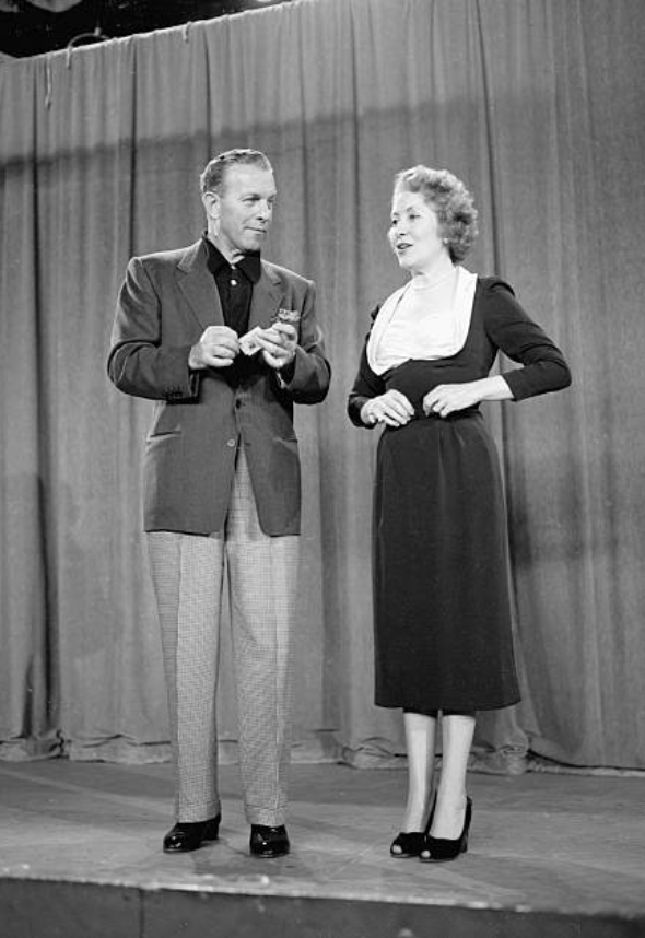 Remember, though, that only 33 of the 52 live episodes are currently in circulation online (see this) and thus able to be considered for this list, for which I have selected ten of the most memorable, representative, and enjoyable installments from the series’ first two seasons. These shows are special because they were staged like one-act plays, performed for an audience, and transmitted immediately. Regular readers know how much I love this design — I love when sitcoms embrace the genre’s theatrical origins, and as such, I’m fascinated with early, live TV. However, in the case of Burns & Allen, the show becomes smarter with its storytelling — and how it uses its characters within plot — during its filmed years, and if you’re wondering my preference, I have to say, for this series, the live shows tend not to be its finest. In fact, you’ll notice that many stories below will be remade in future seasons, and mostly improved upon… Nevertheless, George and Gracie are vaudevillians and they thrive here. So, if you get a chance to see these — their earliest TV performances — you get the feeling that you’re seeing them at their best. And on that note, these are the episodes that I think best embody these first two years. (Oh, and for reference, they don’t have titles, so they’re labeled with what they’re commonly called in online discourse. Also, keep in mind that they’re all directed by Ralph Levy and written by Paul Henning, Sid Dorfman, Harvey Helm, and Willy Burns.)