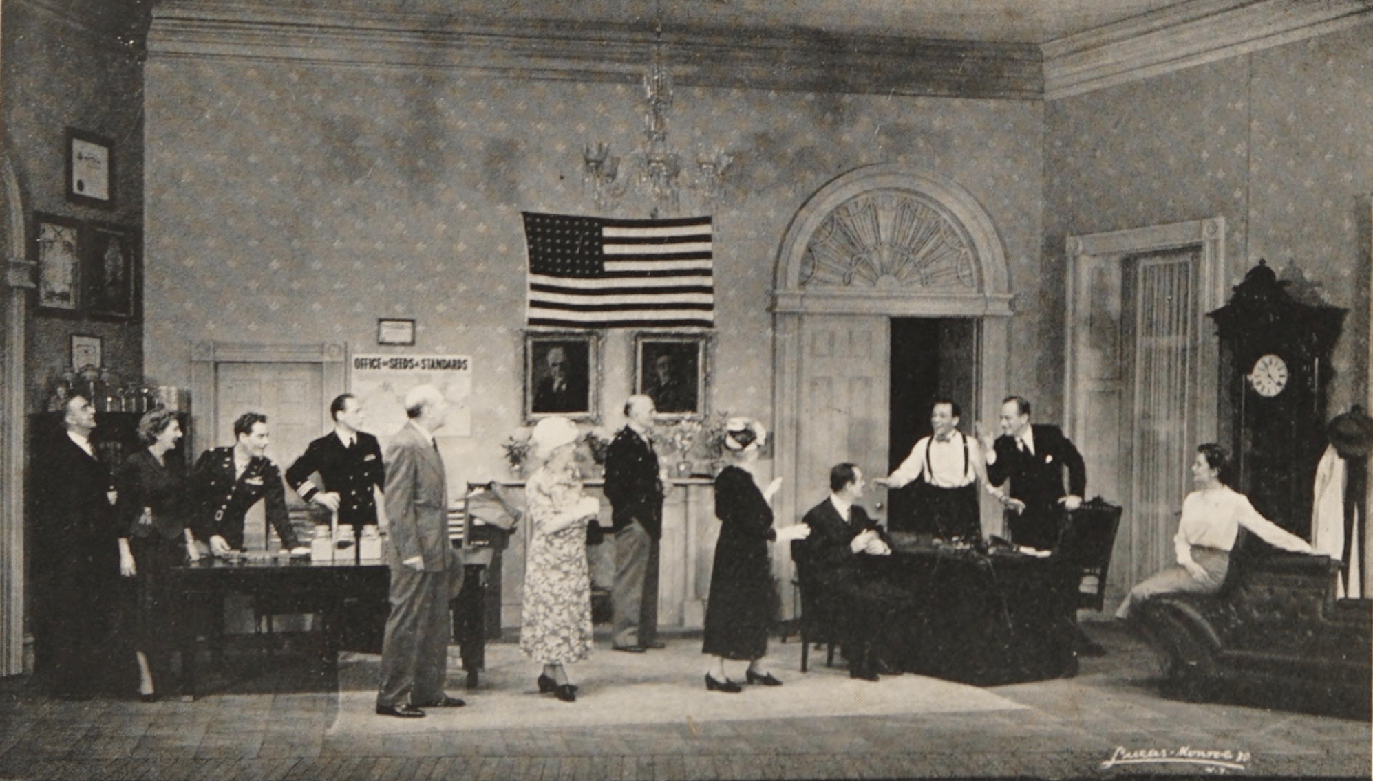 Thoughts: This is basically just a screwball comedy about a man who concocts an elaborate scheme to win back his ex-wife on the eve of her marrying another guy — only it’s couched inside a high-concept premise about his efforts to save the rinky dink government agency run by her two elderly aunts, whose office should no longer exist because it was ordered to be abolished years ago. That logline allows for natural comedy about the ineptitude of bureaucracy with the help of some Cold War-specific but elementally timeless jokes about a bloated government that’s filled with idiots and reprobates. It’s a funny idea, with a handful of funny characters — including the aunts, along with, most importantly, the leading man, a wheeler and dealer who’s driving the scheme, a Bilko-like fast-talker played originally by Melvyn Douglas (no stranger to this kind of screwball comedy). However, so much of the play itself is consumed by story-driven necessities that support its ostentatious high concept, with not much thought beyond it. That is, most of the other characters appear solely for manufactured chaos in a sometimes-hard-to-follow plot, which maybe isn’t quite as amusing as its initial premise suggests, and they lack dimension and/or clarity, feeling somewhat one-dimensional or convenient. And while the text is inherently comedic in its overall tenor, I’m not sure there’s anything that happens or is said that is exceptionally uproarious, especially as far as the basic love story is concerned (although, to its credit, Two Blind Mice ends without forcing a reconciliation between the exes; it’s implied that it’ll happen, but we’re spared the contrivance of seeing it). Perhaps a really smart cast with the right direction (both to guide the staging and refine the pacing) could elevate what’s on the page, for this is otherwise an affable but mostly workmanlike comedy that’s good but not great. (Incidentally, it strikes me as similar to the previous show that Sam Spewack wrote, with his wife Bella, the much more exciting Kiss Me, Kate, which has a familiar love triangle, a government-related element, and a flashy conceptual hook — i.e., the onstage musical version of The Taming Of The Shrew and its obvious parallels to the characters off-stage, which also helps disguise the narrative simplicity of its romantic storytelling.)