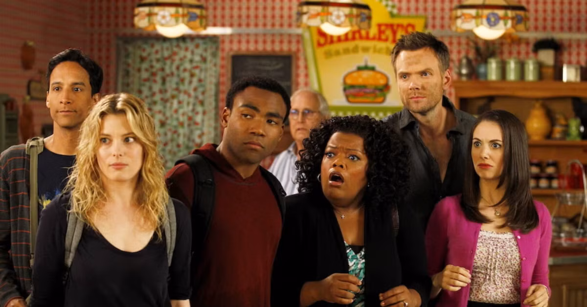 Community stars JOEL McHALE as Jeff, GILLIAN JACOBS as Britta, DANNY PUDI as Abed, YVETTE NICOLE BROWN as Shirley, ALISON BRIE as Annie, DONALD GLOVER as Troy, KEN JEONG as Chang, and CHEVY CHASE as Pierce. With JIM RASH.