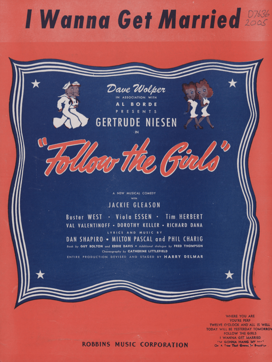 One of the biggest hits to fade into obscurity, this broad farce, which can technically be called a book musical (thanks to Guy Bolton, Eddie Davis, and Frank Thompson) told the story of a love triangle between a burlesque dancer [read: stripper], played by nightclub chanteuse Gertrude Niesen, and her civilian 4-F beau (Jackie Gleason) and a hunky naval officer (Frank Parker). The dancer, Bubbles La Marr (not kidding), takes over a servicemen’s canteen, where most of the “action,” which merely serves as set-up for the speciality acts and riotous dance numbers, occurs. Considered crude and brash — not to mention a direct reaction to Oklahoma! — the show was not popular with New York audiences; rather, it became a hit thanks to the visiting servicemen and their girlfriends, who had likely never seen a Broadway show before and enjoyed the raucous high-energy fun that Follow The Girls offered. In fact, thanks to these enthusiastic audiences, the show closed in 1946 as the second longest-running musical on the Great White Way (second only to the aforementioned Oklahoma!). The show transferred to London and was a hit there, but never made it to the screen and has not been revived. As a result, it’s become a forgotten hit, a rare distinction that belongs to only a special few.