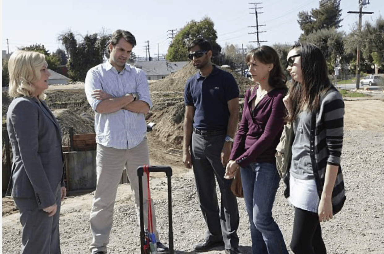 Parks And Recreation is the premier example of the ensemble workplace comedy of the 2010s, descending from the same stock as The Office and 30 Rock, but veering away from their sexy mid-2000s idea-led metatheatrical conceptual gimmicks (like The Office’s mockumentary construct and 30 Rock’s showbiz-about-showbiz SNL tone) to establish a more casual and sustainable single-cam version of a familiar sitcom subgenre, with a feel-good sensibility that, even more than its comedy, indicates the ethos that this entire genre, overall, will reflect in the second decade of the 21st century. That is, as cable and streaming were steering the entire medium into more self-serious waters, all that was needed to be considered an alternative to “drama” wasn’t necessarily hilarity, just relative lightness. And indeed, Parks And Rec is always a light, feel-good show, with a traditionalism that gives it a classic sitcom trajectory – a few seasons are needed to refine itself, then there’s a pretty decent stretch of consistent excellence, followed by an obvious cool down that’s nevertheless not terrible. And the fact that it’s well-designed, and also very funny (yay!) in addition to warm and light, has allowed it to become a modern gem – the 2010s’ finest ambassador for the workplace sitcom. I was eager to cover it here, alongside both The Office and 30 Rock, because they’re all kin – not only were they neighbors within NBC’s Thursday night comedy block at the end of the 2000s and beginning of the 2010s, but they’re also all among the best ensemble work-centered comedies of the 21st century – which makes them particularly easy to compare. What’s more, they’re aesthetically related too, with notable Saturday Night Live ties that further suggest a trend we discussed recently with 30 Rock – the fuller adoption of idea-driven sketch comedy attitudes in 2000s sitcoms, especially via alums from the only remaining comedy-variety show of note, SNL. For Parks And Rec, these ties are strong – and familiar. For one, its star, Amy Poehler, was a big talent at SNL, even sharing the Weekend Update desk for several years with 30 Rock’s future star and fellow scribe, Tina Fey (who, like Poehler, had also studied at Second City in Chicago). So, right off the bat – there are clear SNL affiliations at the very top of Parks And Rec, just like on 30 Rock.