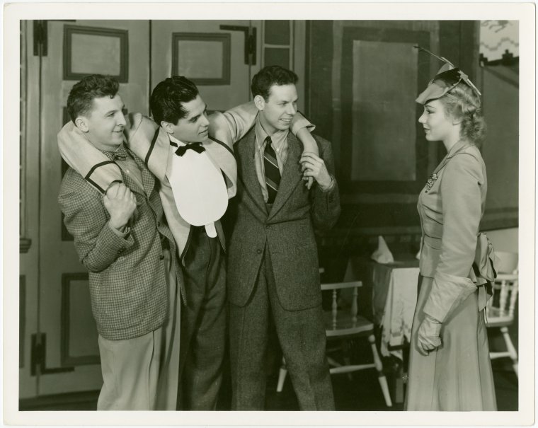It’s this kind of fun that, not surprisingly, prevails throughout the majority of the score. We have the requisite Alma Mater, introduced by Clyde Fillmore as Connie’s dad and Hans Robert as the former’s employee, later taken up by the students of Pottawatomie. Fortunately, Hart’s lyrics serve up a delicious parody, making the choral number much more enjoyable than it would be otherwise. The joviality continues in more of the typical “college show” numbers. Pottawatomie’s football players (which included young Van Johnson) open with, “Heroes In The Fall,” a surprisingly catchy ditty that sets the tone for the proceedings and establishes the school’s not uncommon obsession with football. Still yet, there’s the anticipated cheerleader number, called “Sweethearts of the Team,” led by Walsh and the girls. Let’s note that the functions these numbers serve are obligatory and nothing unordinary, yet with the mastery of Rodgers, and more specifically, Hart, these numbers truly become something special.