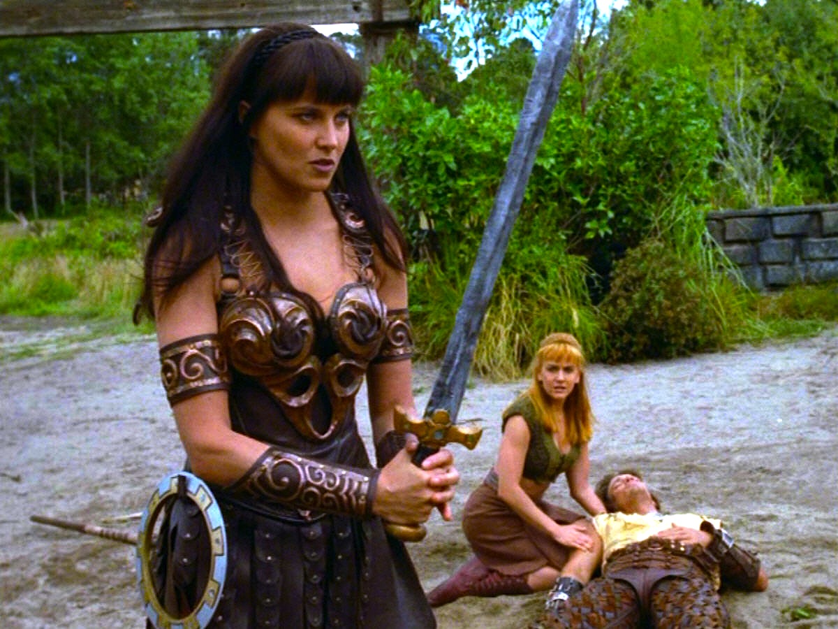 Welcome to another Xena Thursday! Today, we’re continuing our three week sojourn into the crossovers that Xena: Warrior Princess made with her big brother show, Hercules: The Legendary Journeys, from which the character of Xena was initially spun-off. These three posts cover all the times that Lucy Lawless, Renee O’Connor, and/or Hudson Leick appeared on Hercules as Xena, Gabrielle, and Callisto respectively. (Note that I will not be covering the times in which these actresses portrayed other characters, as those aren’t crossovers.) I’ll also cover the one episode in which Hercules and his sidekick Iolaus appeared together on Xena, while the other two Hercules crossovers on Xena (“The Quest” and “God Fearing Child”) have already been covered here and will not be repeated.